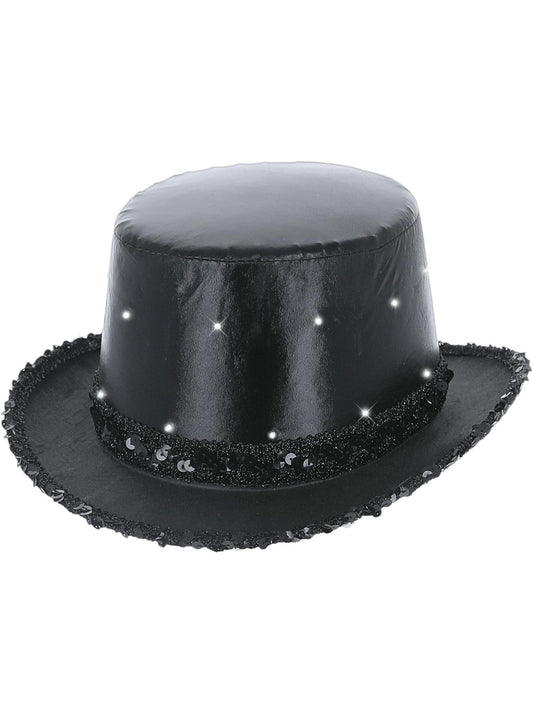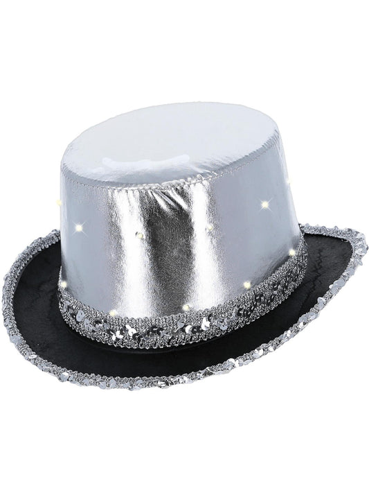 • LED Light Up Metallic Top Hat, Silver Wholesale