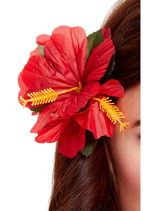 Disfraz de belleza hawaiana, rojo, con vestido, adorno para el pelo y pulsera