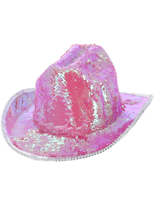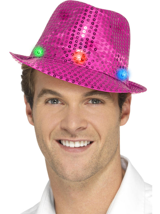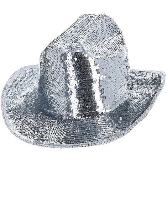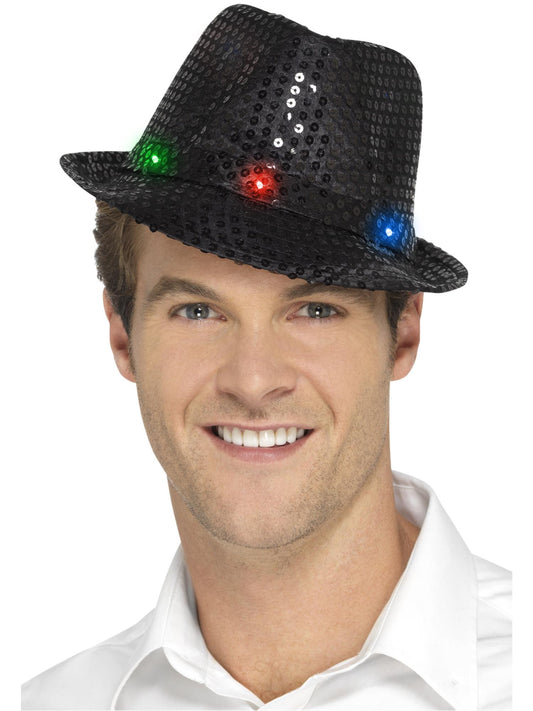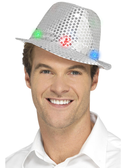 Sombrero de ala corta con luces y lentejuelas, plateado, con luces LED multifunción