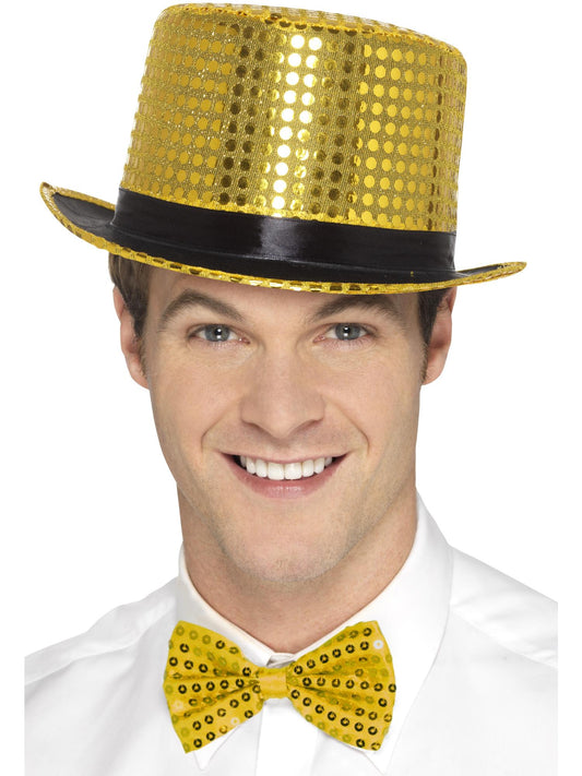 Sombrero de ala corta con luces y lentejuelas, dorado, con luces LED multifunción