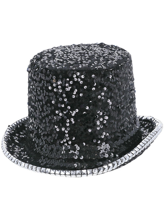 Sombrero de capitán Fever Deluxe con adornos de lentejuelas, negro, con cadena