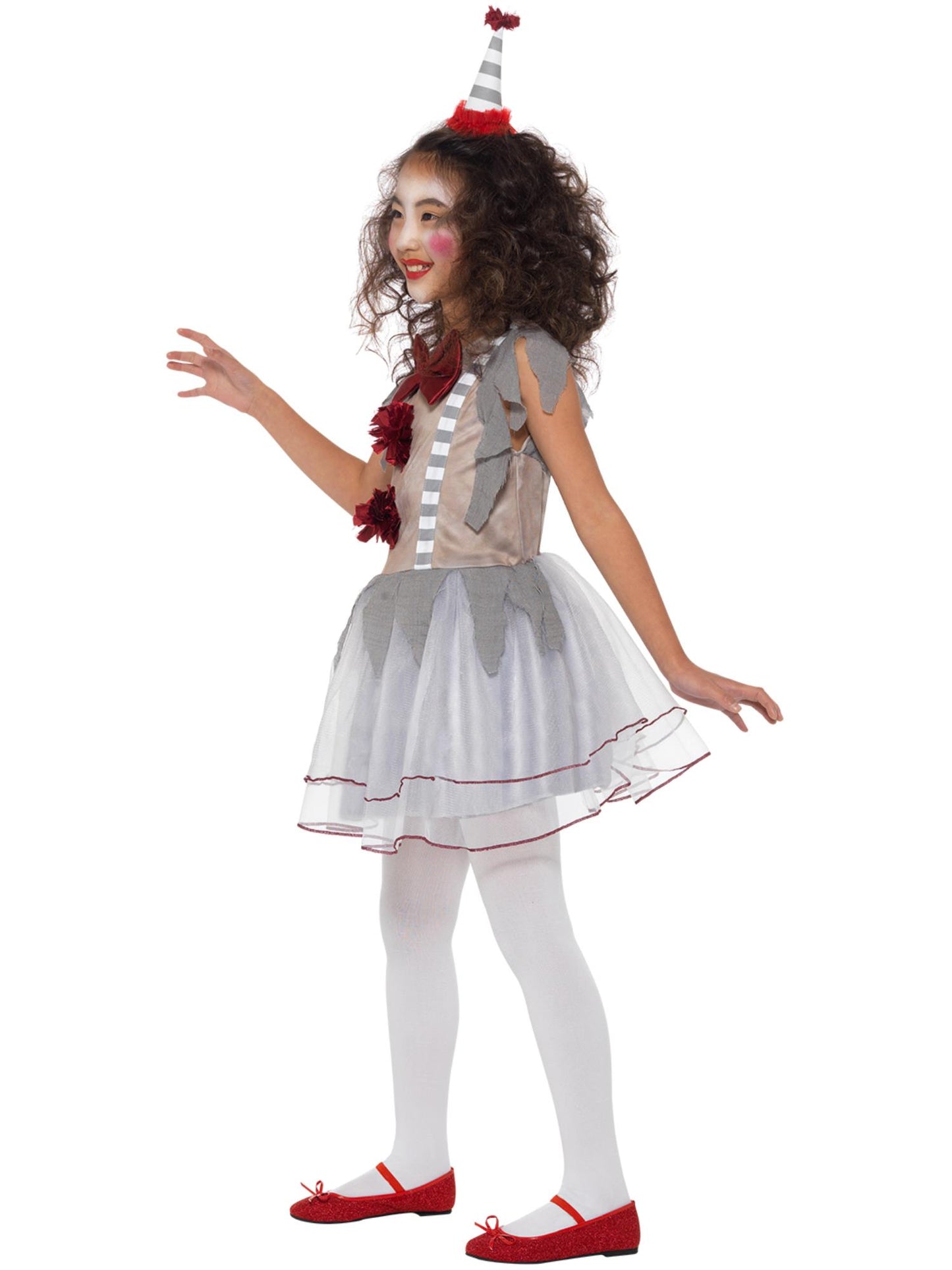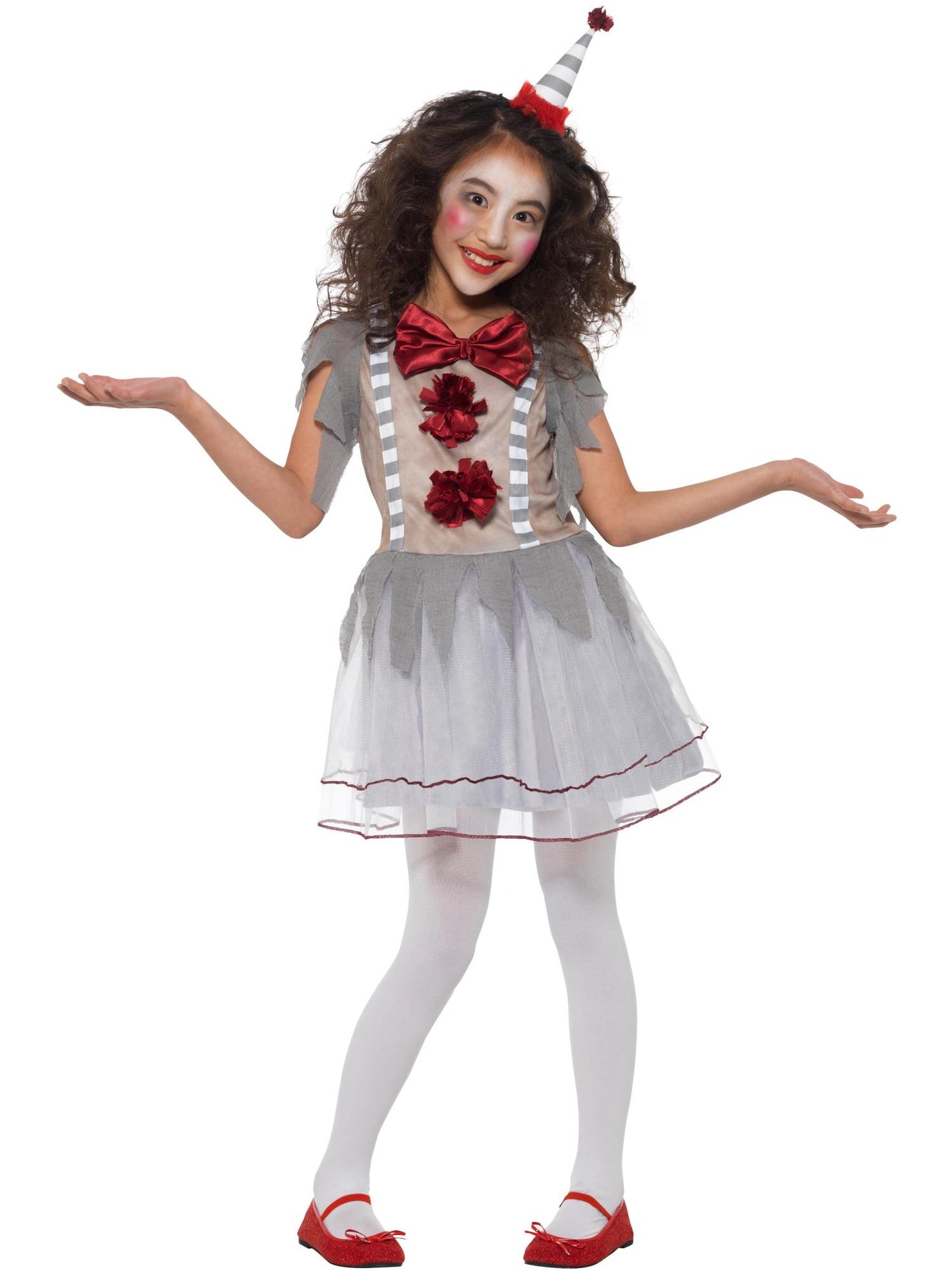 Vintage Clown Girl Costume, Grey & Red with Dress & Headband