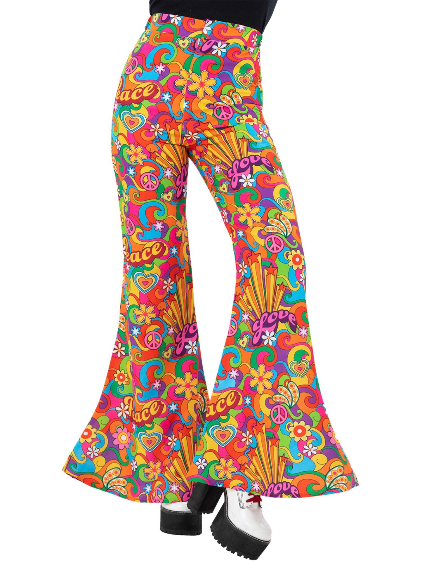 Ladies Rainbow Peace Flared Trousers Stretch Fabric